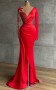 Rot Lang Sleeve V-ausschnitt Meerjungfrau Ballkleider REALS215