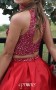 Rotes Stretch Satin A-line Halfter Kurz / Mini Zweiteilige Cocktailkleider (GJT3937)
