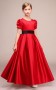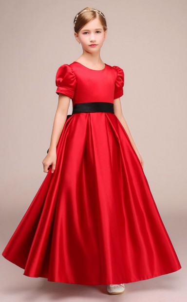 Rubin Satin Kinder Mädchen Kurze Ärmel Geburtstagsfeier Kleid Mit Schwarzen Schärpen GBCH029