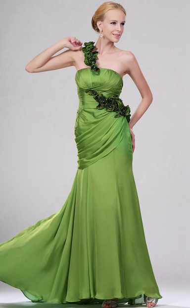 Salbei Chiffon Scheide eine Schulter lange Brautjungfer Kleid (GBD457)