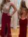Wassermelone Spitze Tüll Trompete / Meerjungfrau Schaufel Lange Zweiteilige Ballkleider (GJT3914)