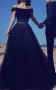 Dunkelblaue Spitze Von Der Schulter Halbes Ärmel Ballkleid Langes Promikleid (GJT3758)