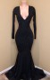 Schwarzes V-ausschnitt Langarmer Meerjungfrau Prom-kleid REALS209