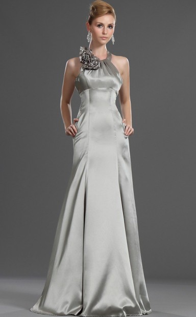 Silber Chiffon Scheide Halfter lange Brautjungfer Kleid (GBD488)