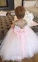 Weiße Spitze Tüll Kinder Mädchen Langarm Geburtstagsfeier Festzug Kleid GBCH039