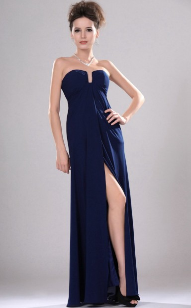 Tinte blau Chiffon A-Linie trägerlose lange Brautjungfer Kleid (GBD434)