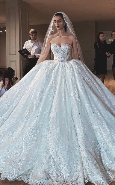 Trägerloses Luxus Schatz Prinzessin Spitze Brautkleid GBWD033