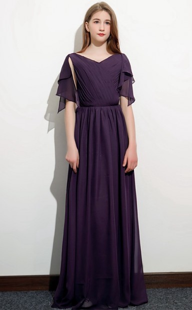 Traubenfarbenes Kinder-Brautjungfernkleid, Blumenmädchenkleid GJFGD071