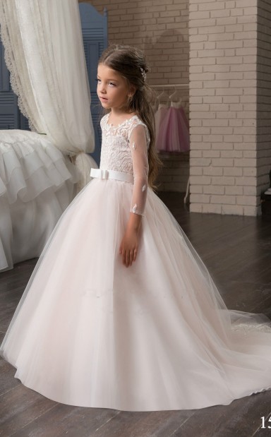 Tüll, Spitze Prinzessin Juwel Langarm Mädchen Abendkleider Chk161