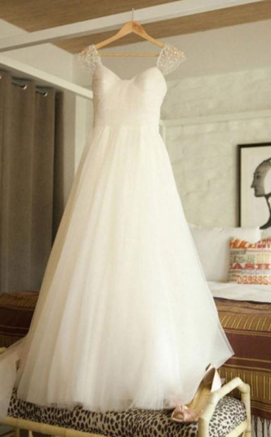 U-ausschnitt Flügelärmel Sweep Zug Perlen Plissee Brautkleid Mit Perlenstickerei Twa1062