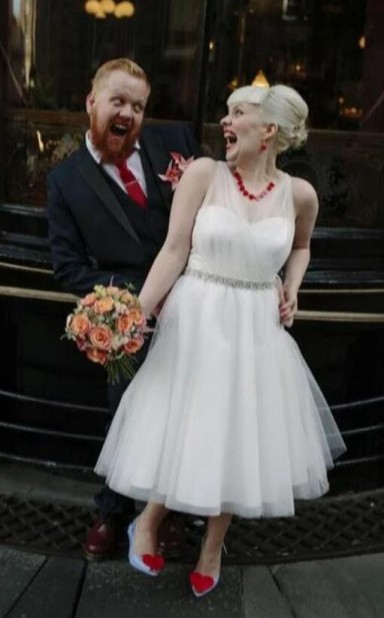 Kurzarm -Tupfen 50er -Hochzeitskleid 50er Jahre GBWD285