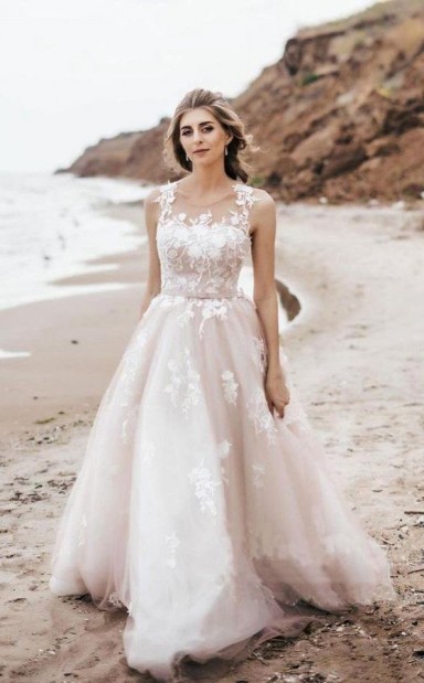 Wunderschönes Brautkleid In A-linie Mit V-ausschnitt Und Offenem Rücken Aus Tüll Mit Applikationen Twa5142
