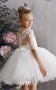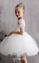 Weiße Spitze Tüll Illusion Kurzarm Mini Prinzessin Kinder Ballkleid (FGD317)