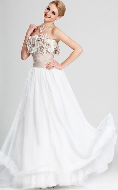 Weißer Chiffon A-Line trägerloser langes Vintage Brautjungfernkleid (GBD502)