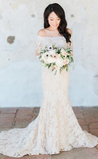 Wunderschönes Schulterfreies Meerjungfrau-hochzeitskleid Aus Weißer Spitze Mit Langen Ärmeln Twa1192